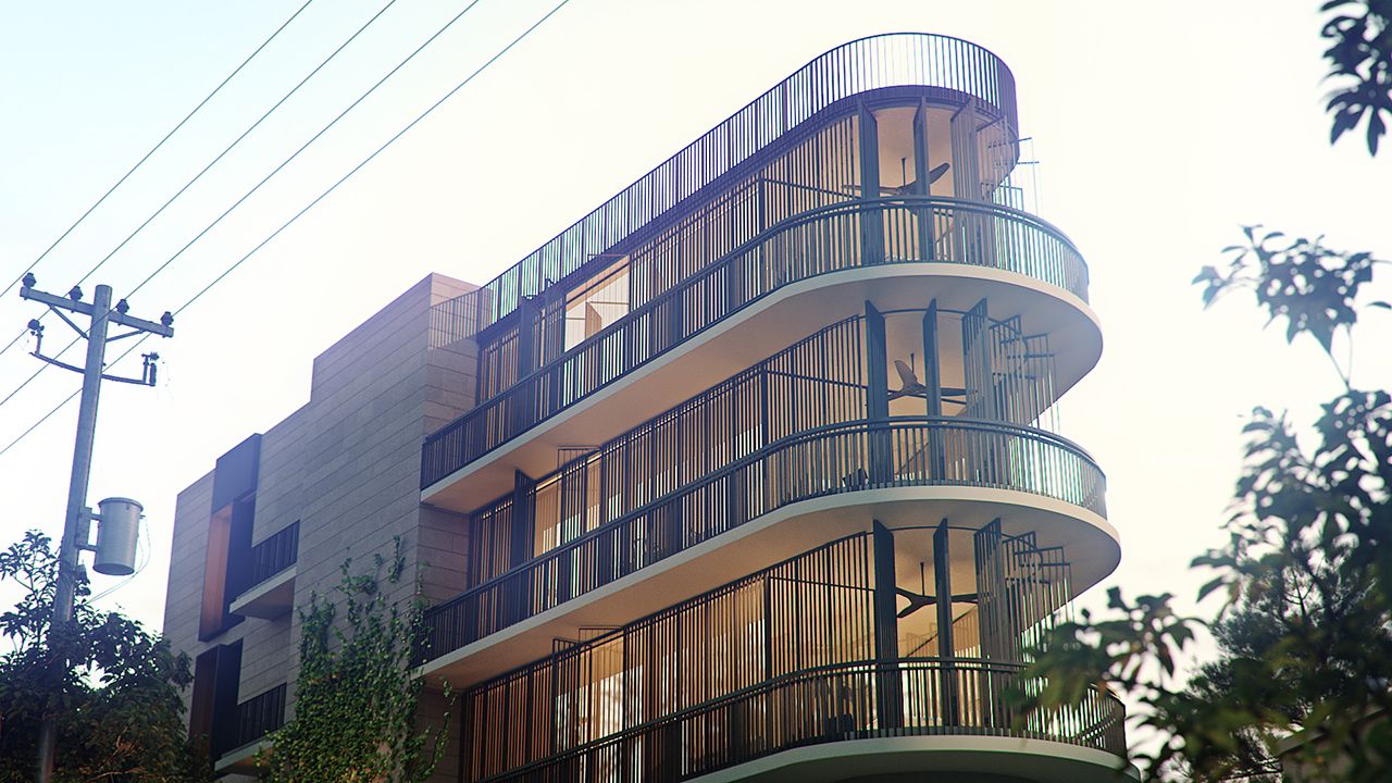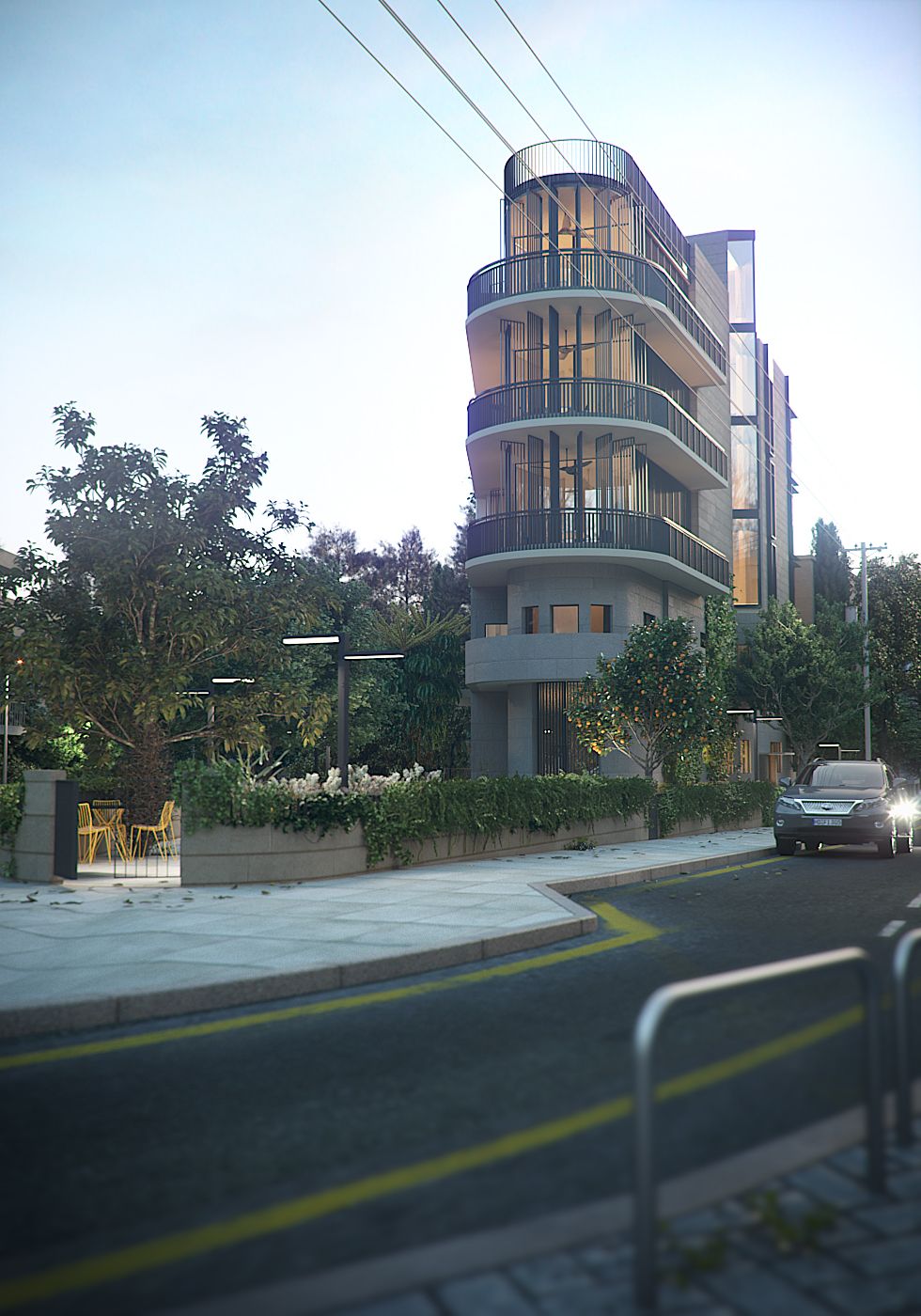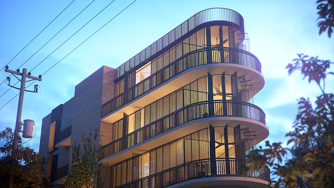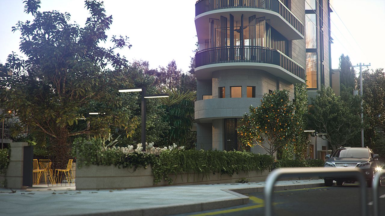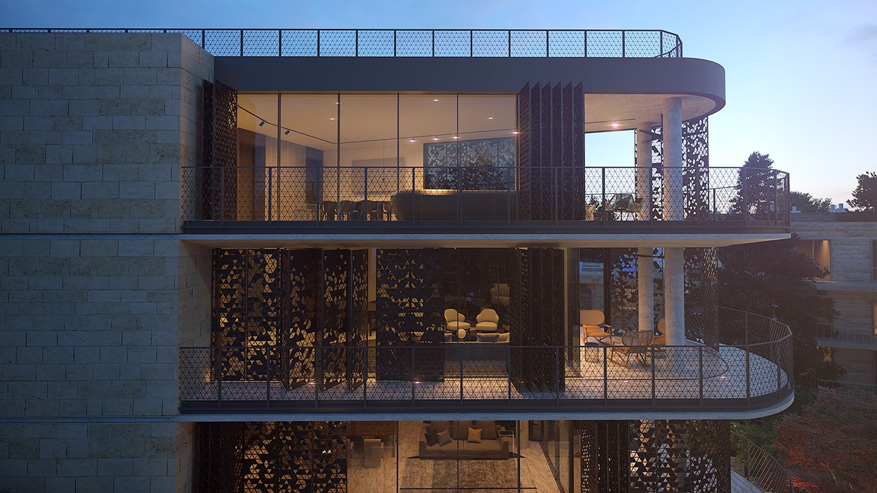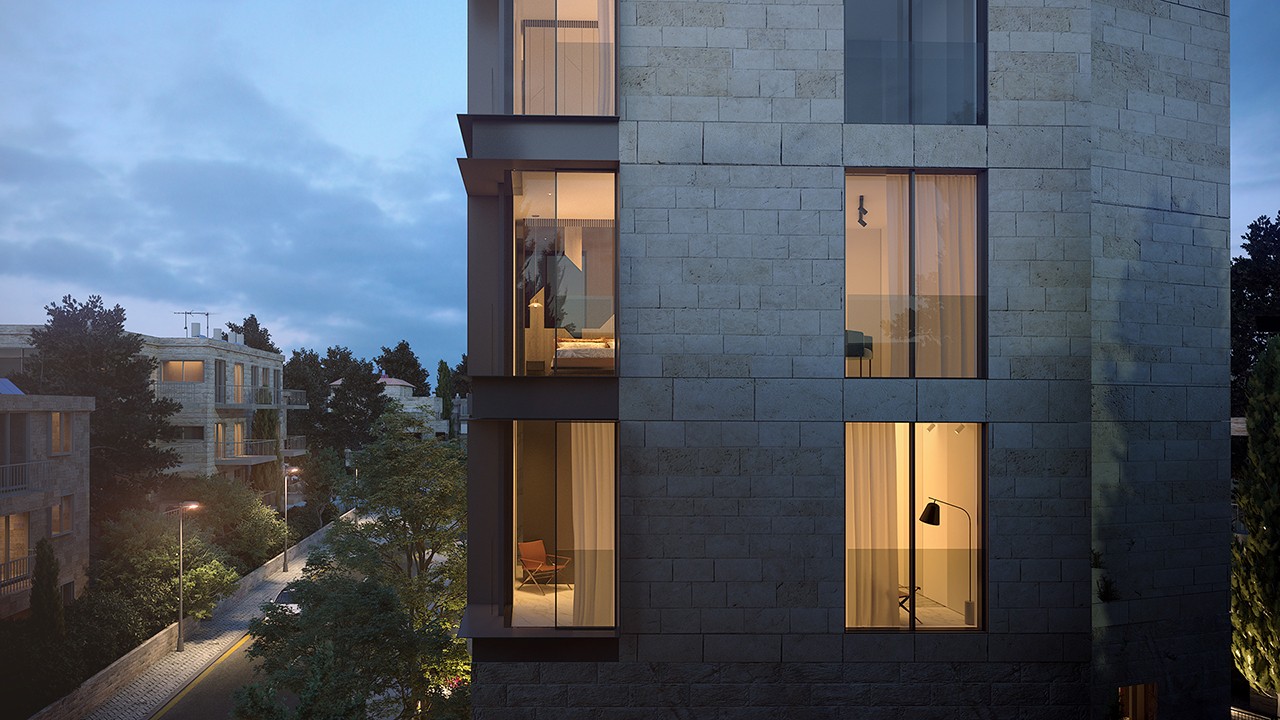 Architectural visualization of residential building located in Rambam St. Jerusalem. The visualization provides a detailed look at the building's exterior, including its various features, architectural design, and layout.