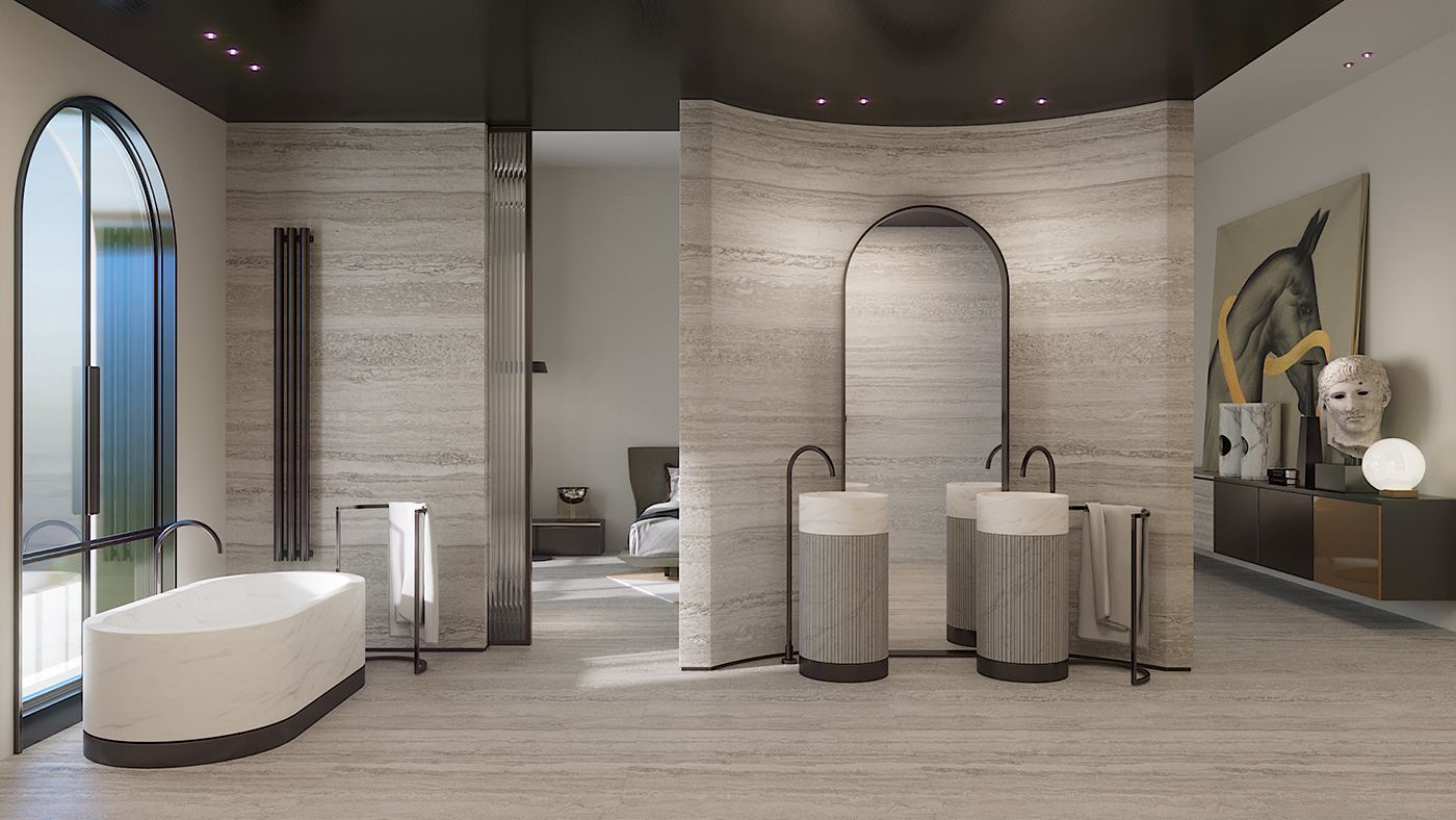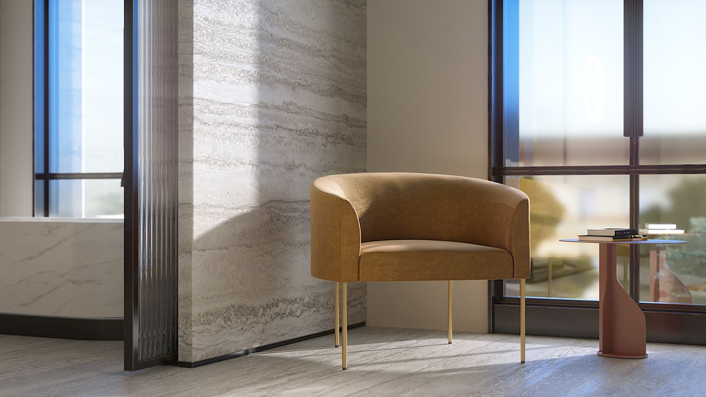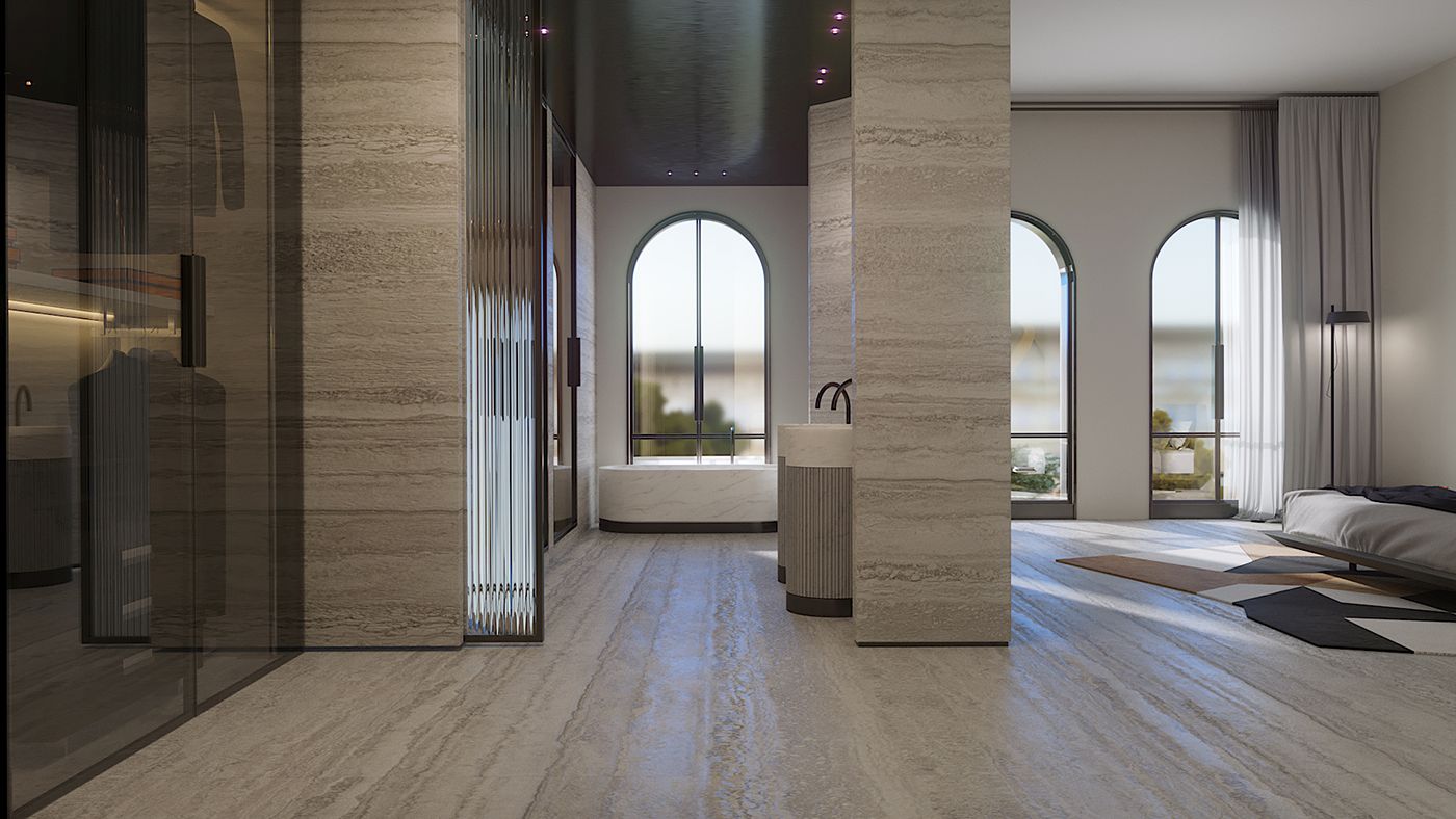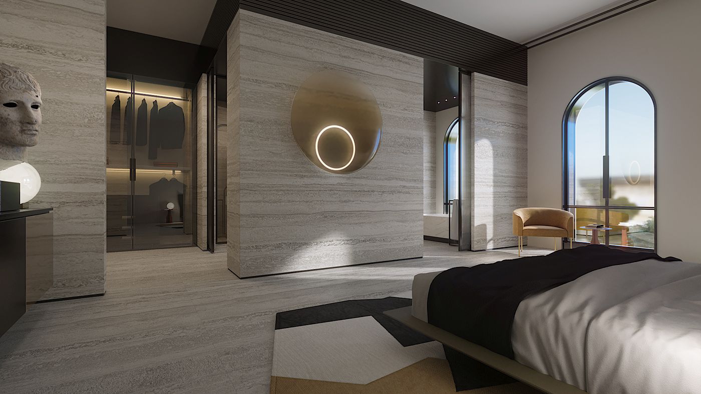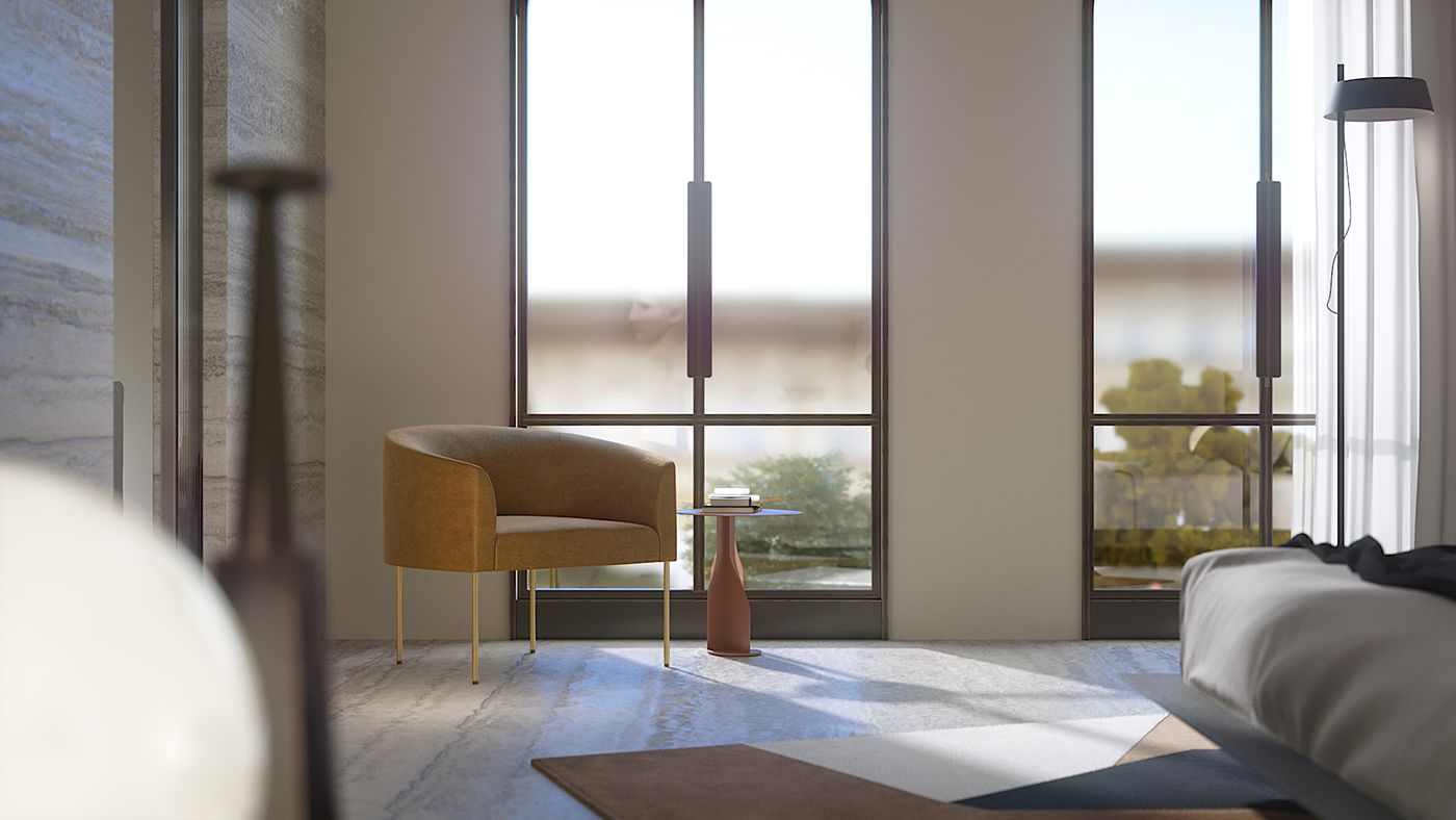A 3D interior visualization of a hotel apartment located in a high-end hotel in Jerusalem, which was created to showcase the design and layout of the interior.