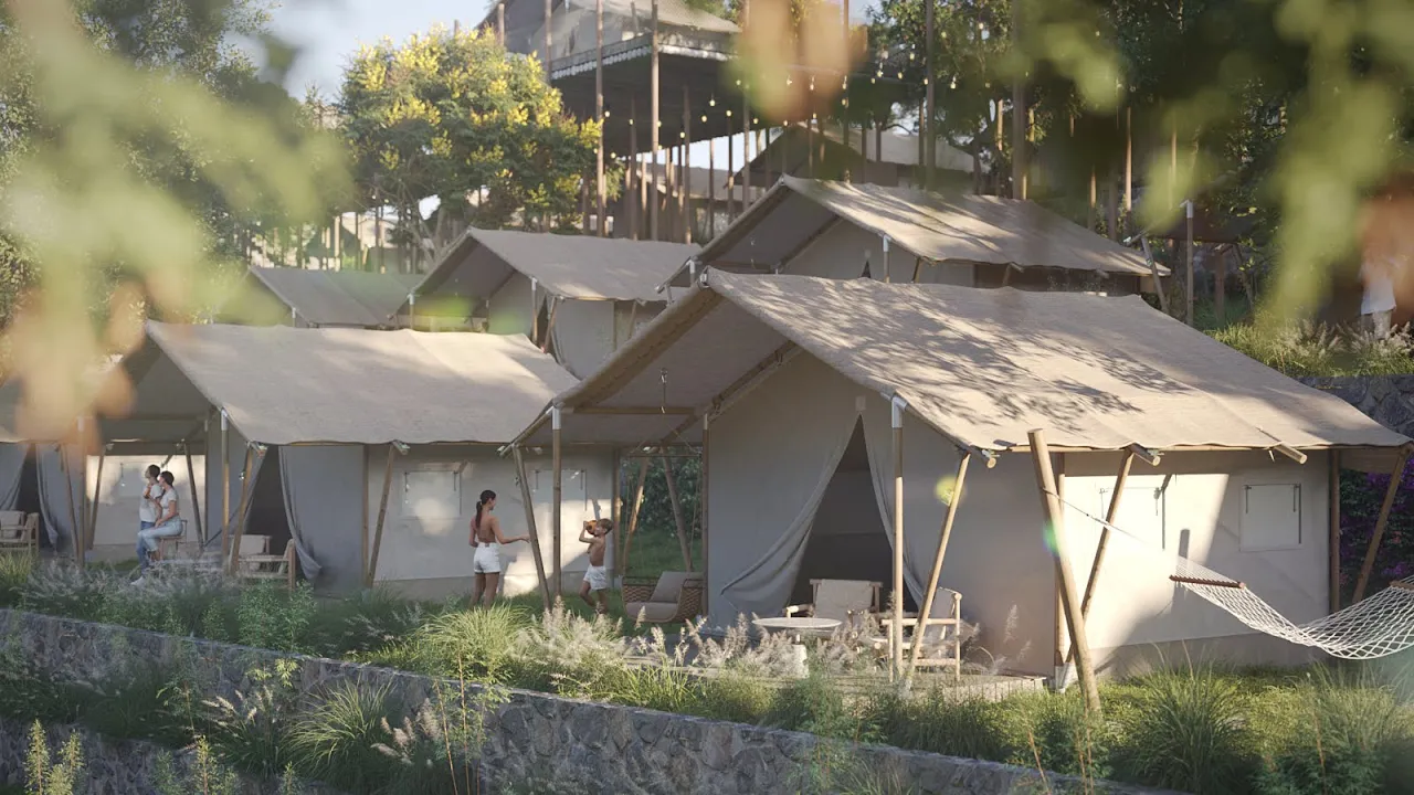 This architectural visualization project presents a glamping resort in Tiberias, designed to blend luxury and nature. The concept features elevated wooden decks, canvas tents, and lush landscaping, offering guests a serene and immersive experience overlooking the Galilee hills and the sea.